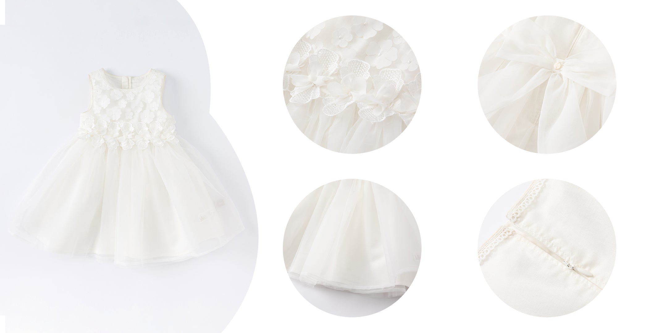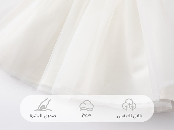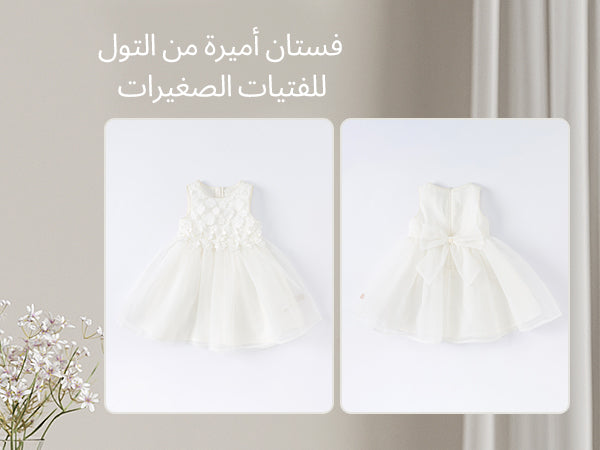 فستان صيفي للفتيات الصغيرات باللون الأبيض بدون أكمام من قماش شبكي على طراز الأميرة
