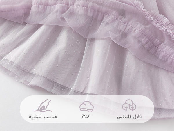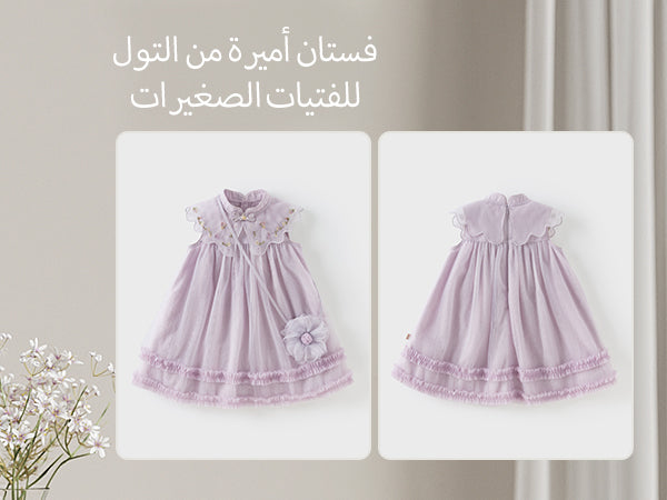 فستان صيفي للفتيات الصغيرات باللون البنفسجي الغباري من قماش شبكي مطرز بدون أكمام على طراز الأميرة