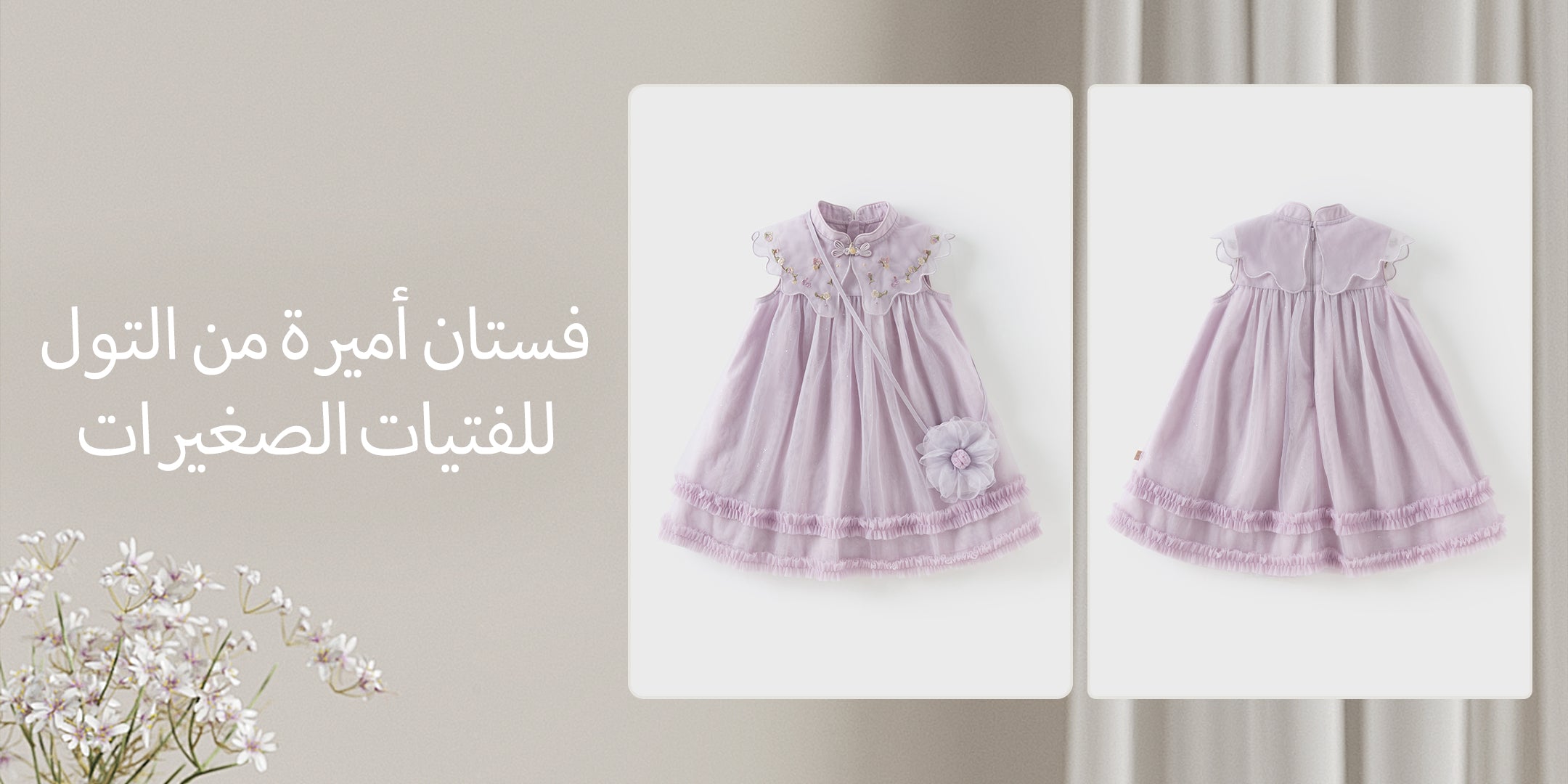 * لون بنفسجي جميل مع تطريز فراشة ثلاثي الأبعاد
