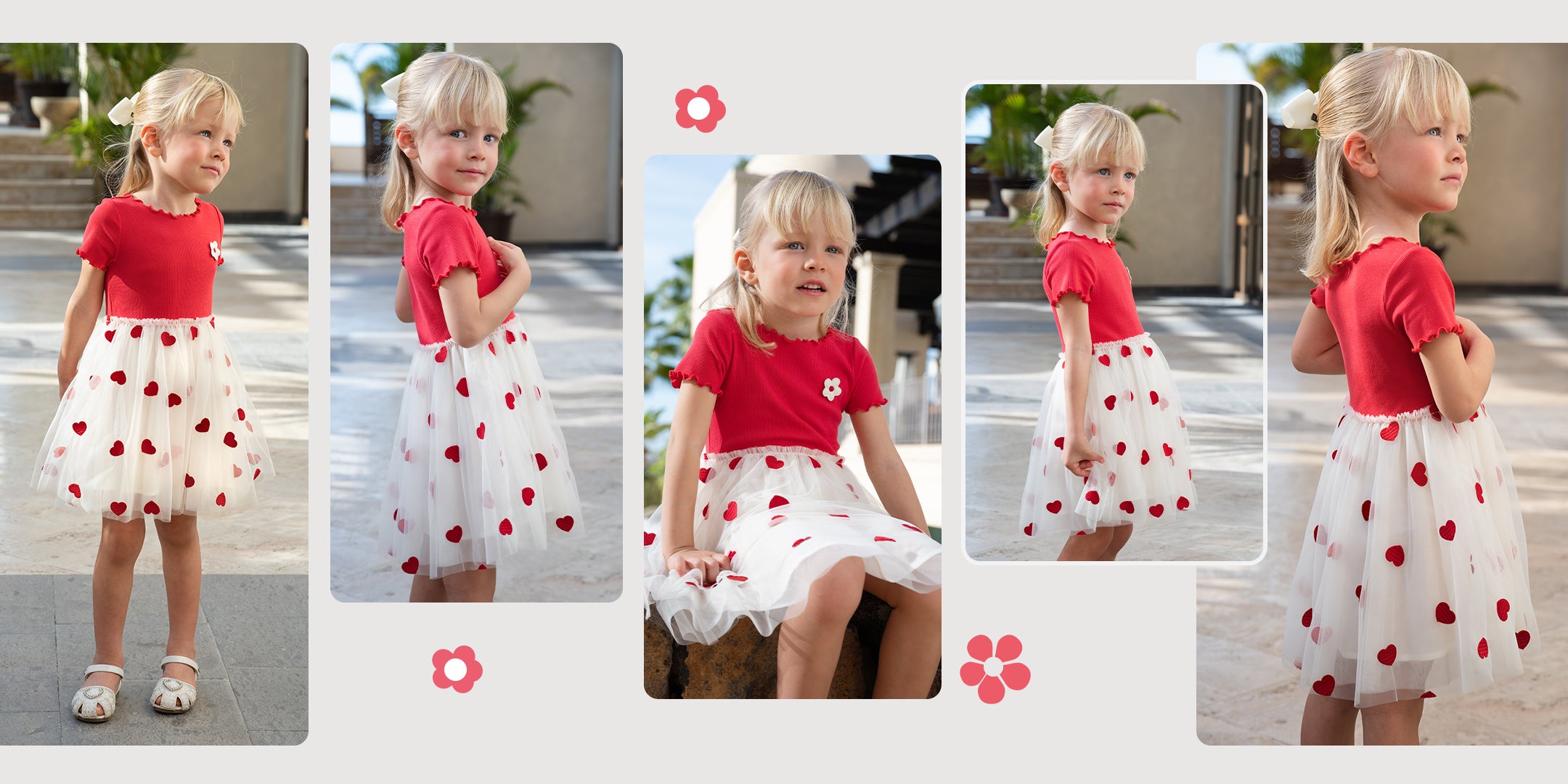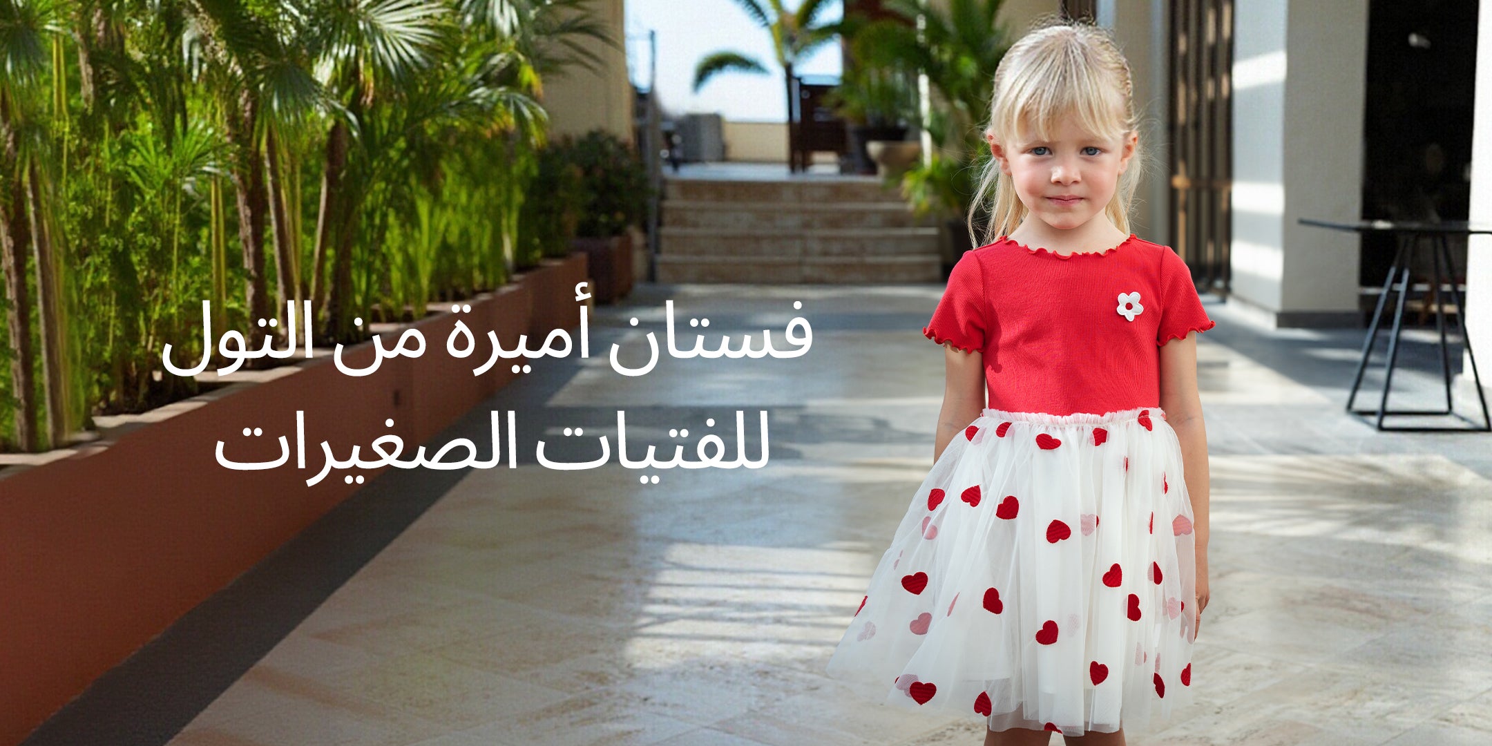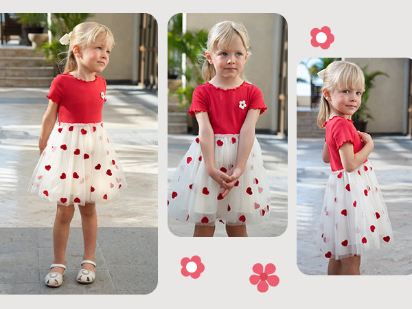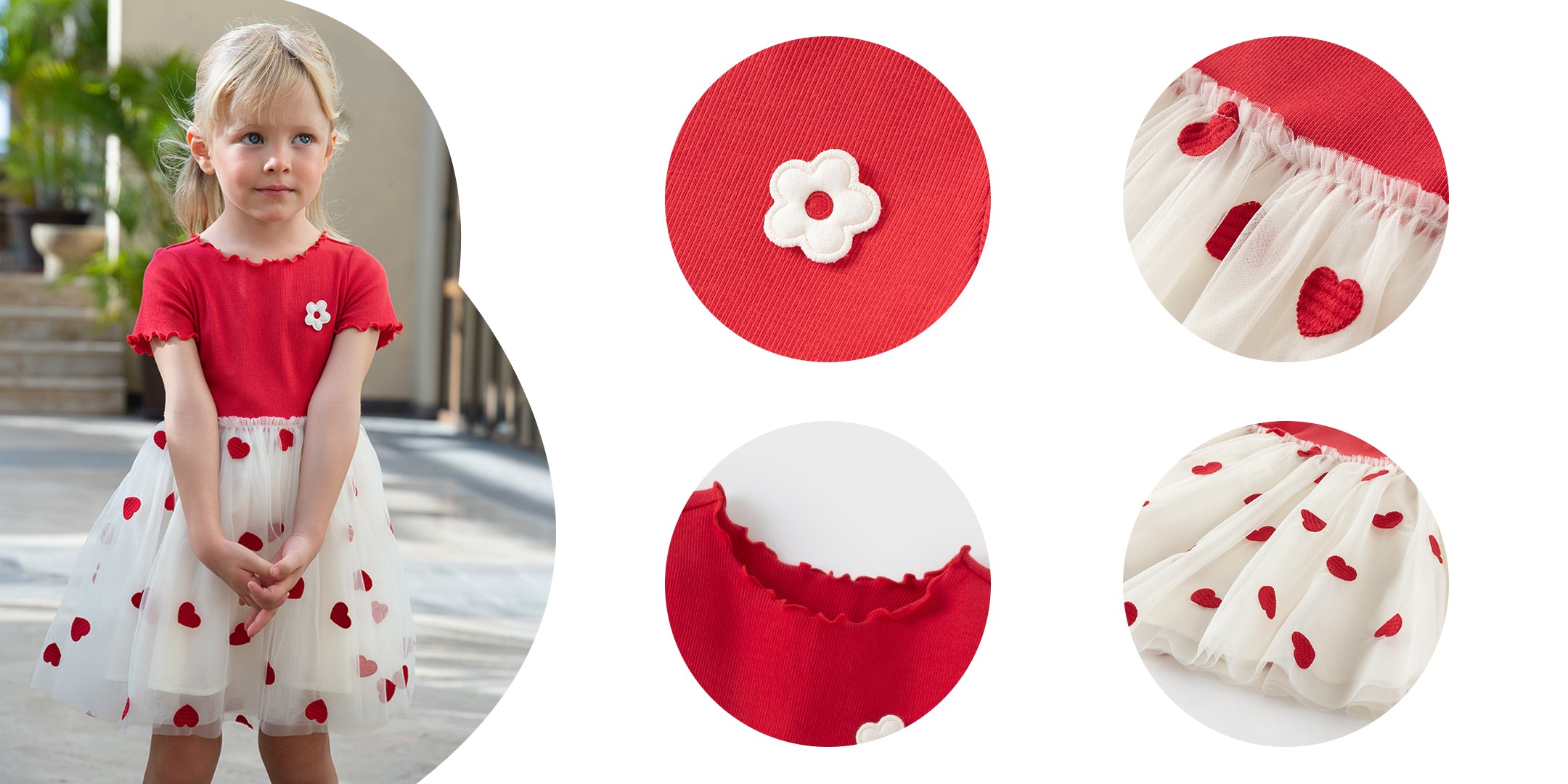 فستان شبكي غير رسمي للفتيات الصغيرات في الصيف باللون الأحمر وأكمام قصيرة