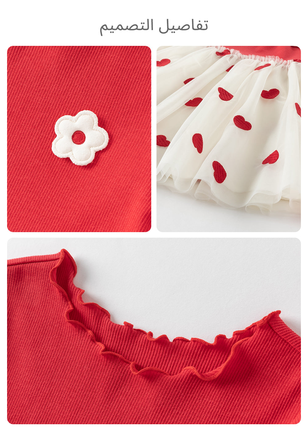 * قماش شبكي أبيض مع نقاط بولكا على شكل قلب مرحة باللون أحمر داكن