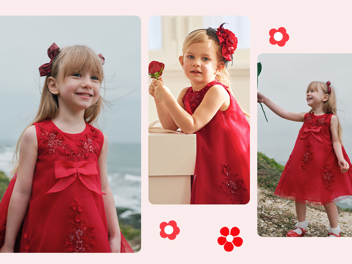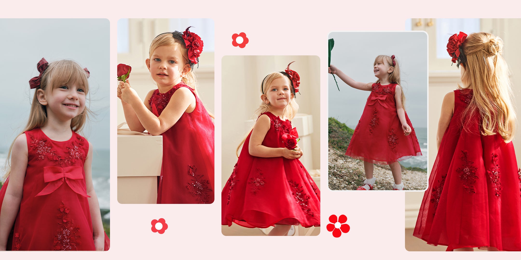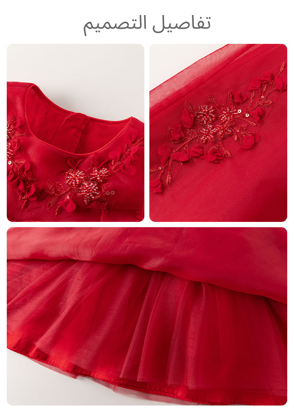 فستان حفلة أميرة صيفي للبنات باللون الأحمر بدون أكمام بتصميم فاخر
