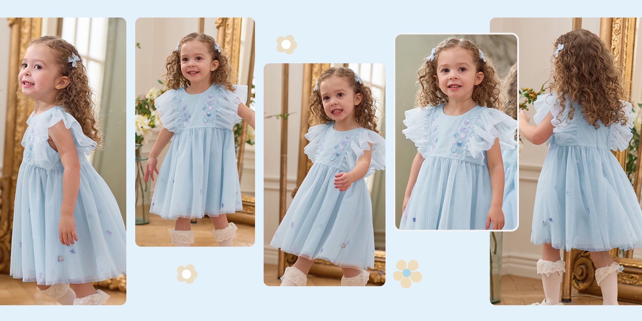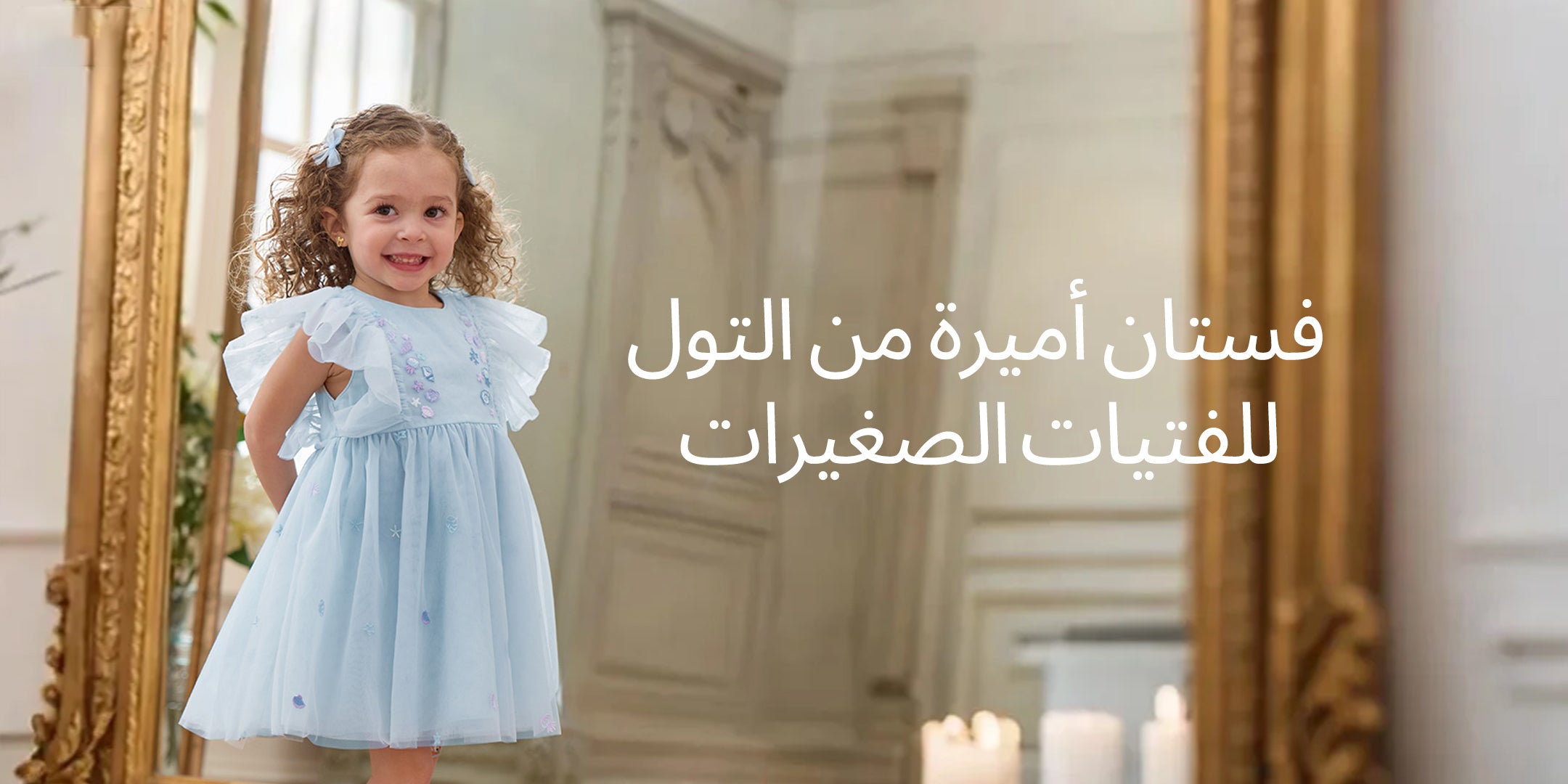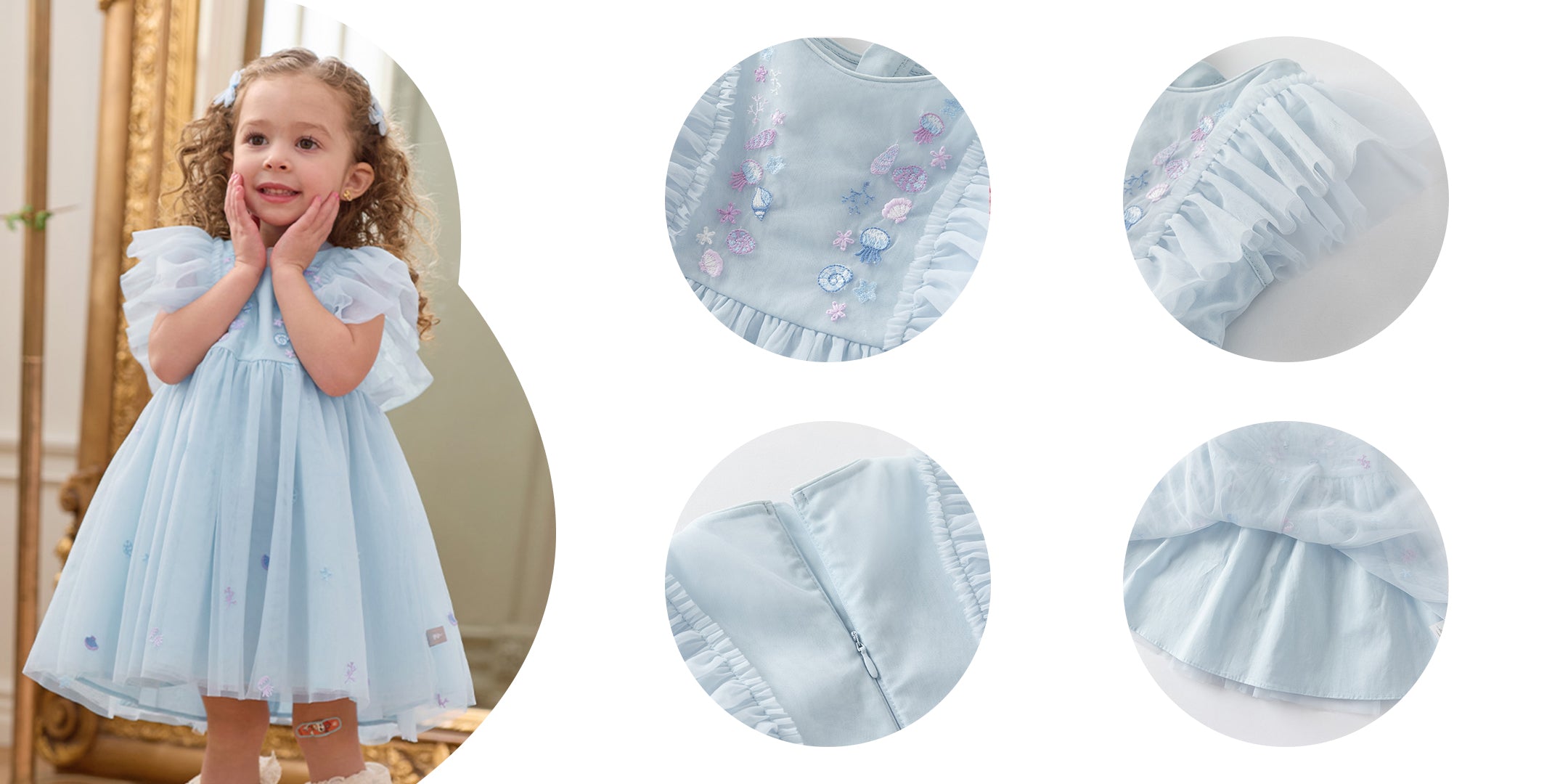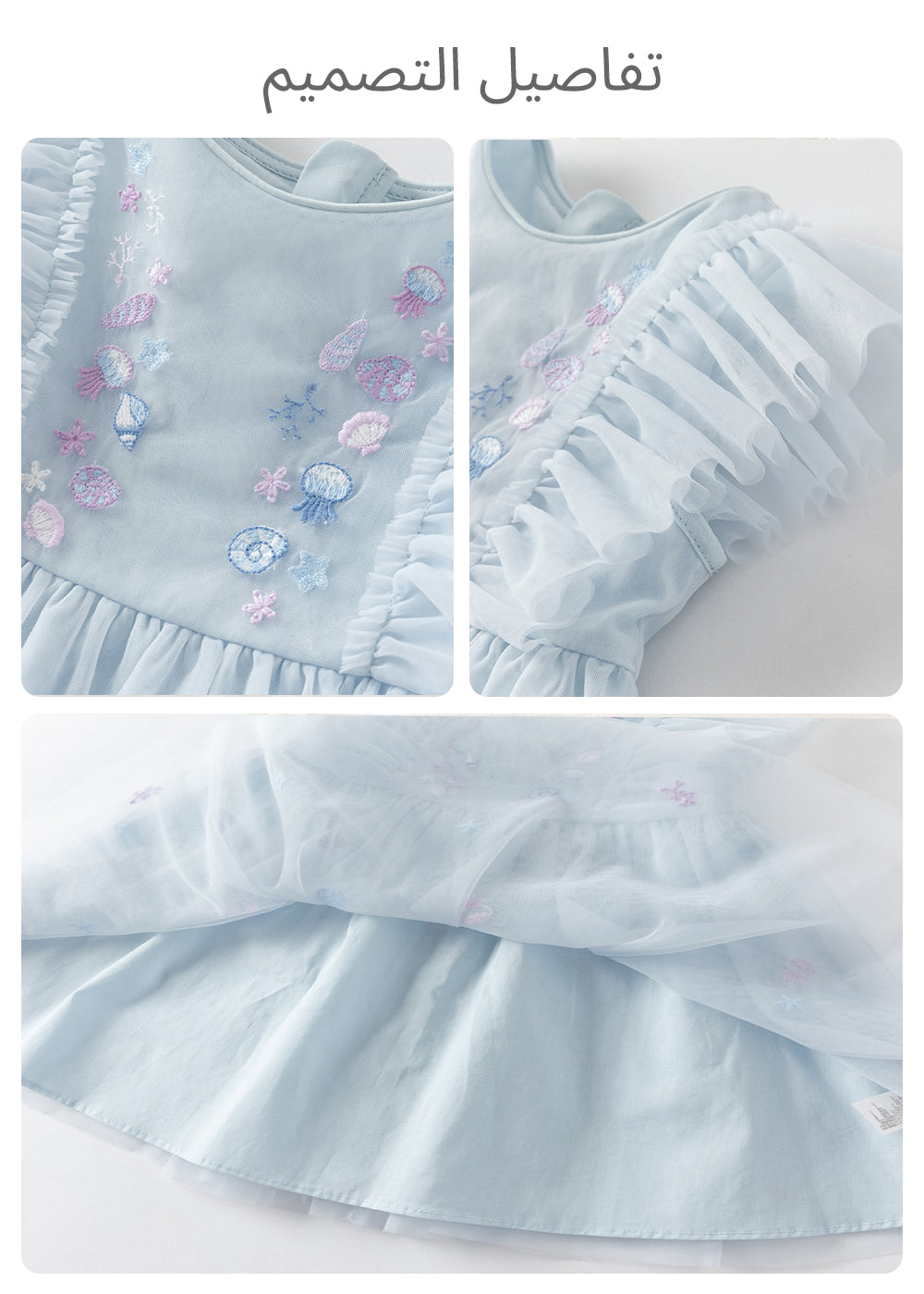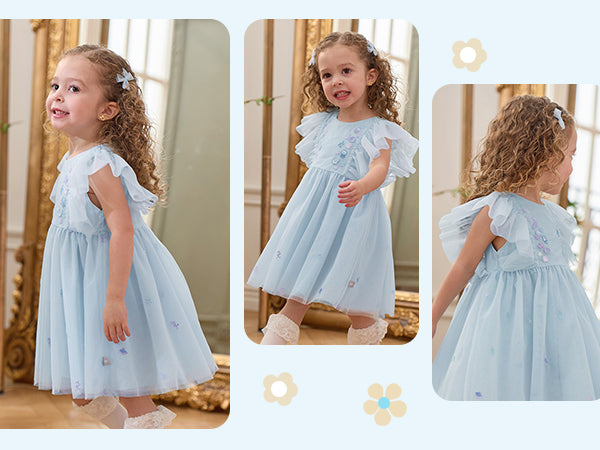 فستان حفلة صيفي بدون أكمام شبكي باللون الأزرق الفاتح للبنات الأطفال